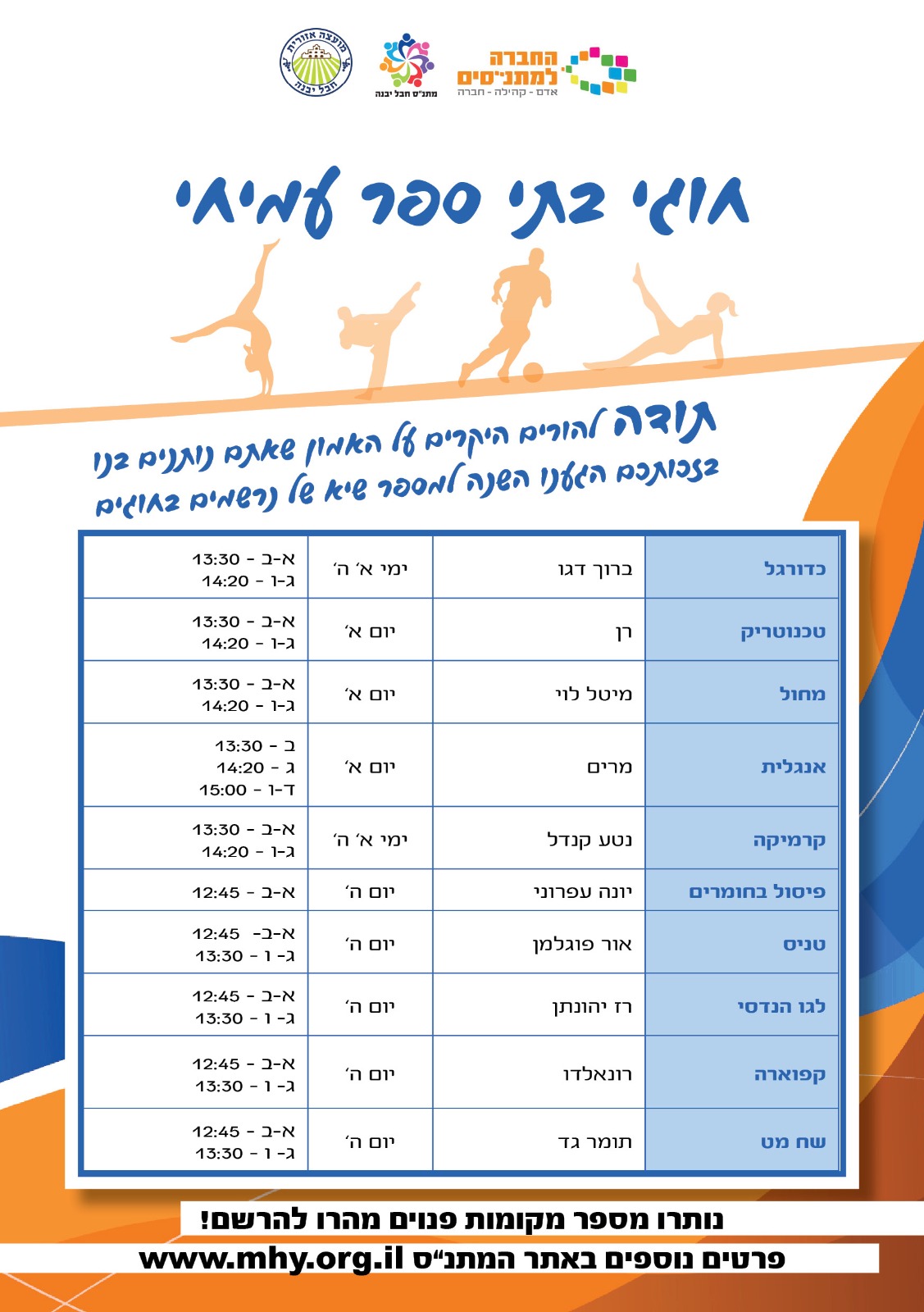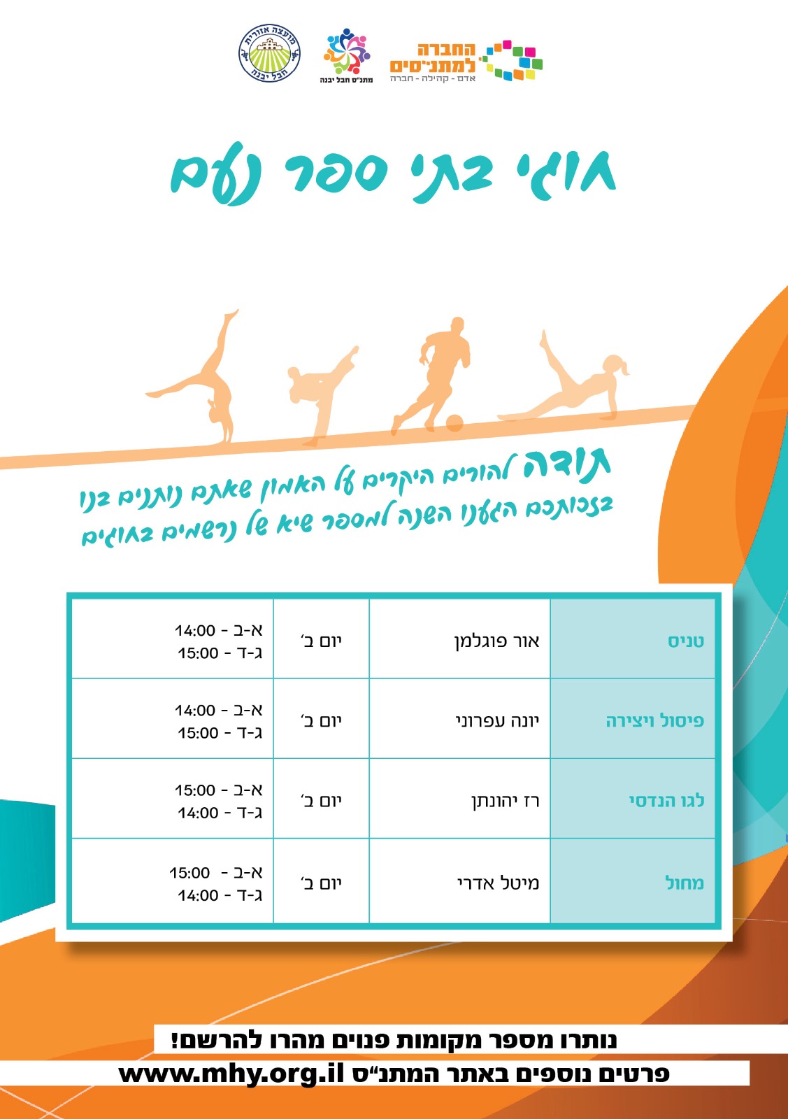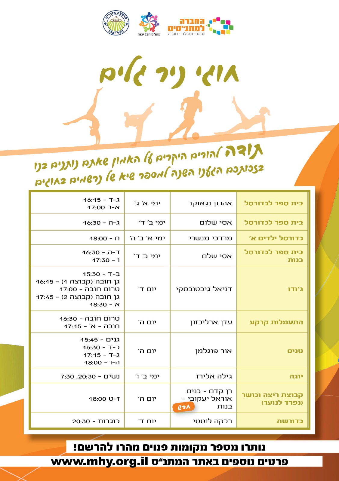 מקומות אחרונים בחוגים ביישובים השונים! מהרו להירשם באתר המתנ"ס