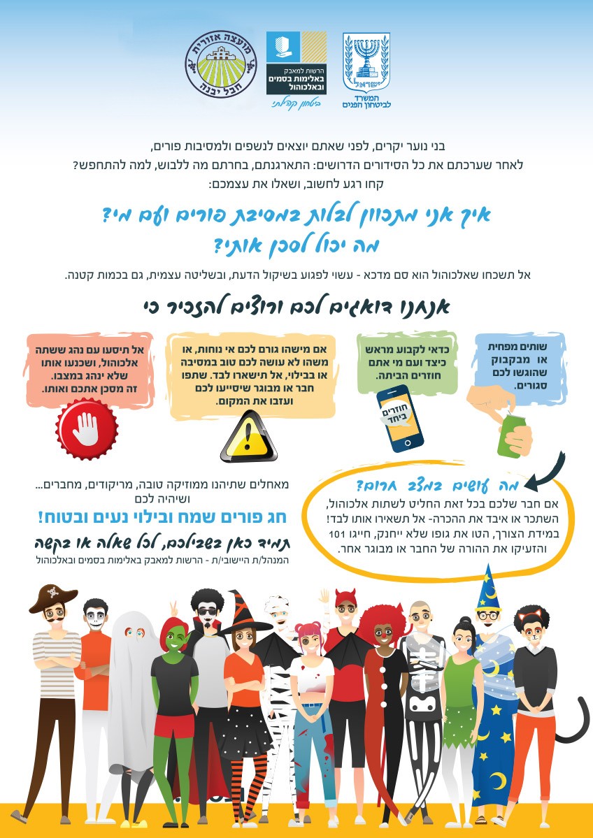 המחלקה לביטחון קהילתי מאחלת לבני הנוער פורים שמח ומזכירה כיצד לנהוג באחריות
