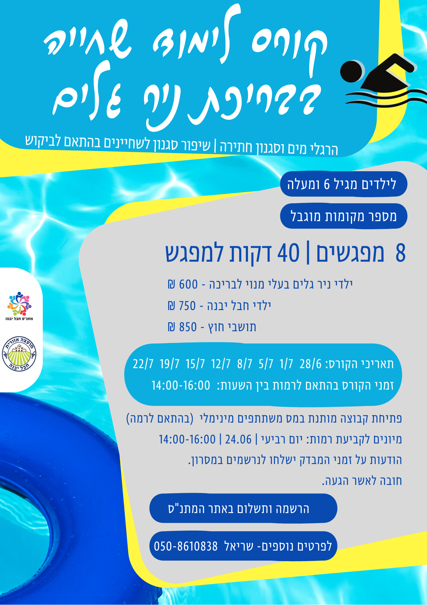 מוזמנים להירשם לחוג שחייה בבריכת ניר גלים!