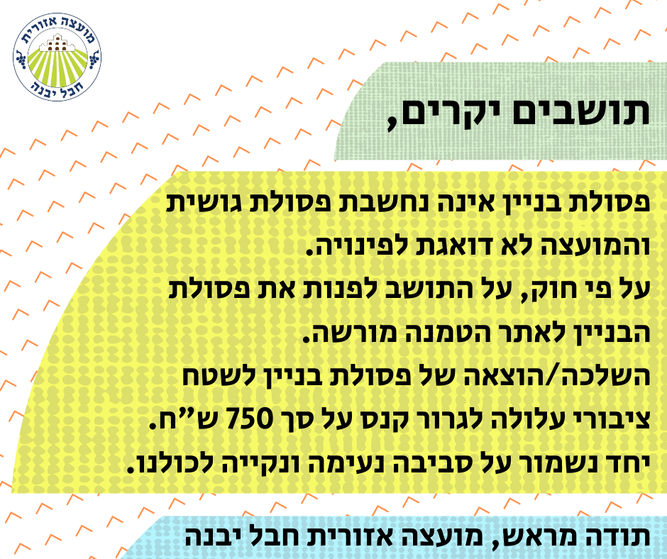 הודעה בנושא פינוי פסולת בניין
