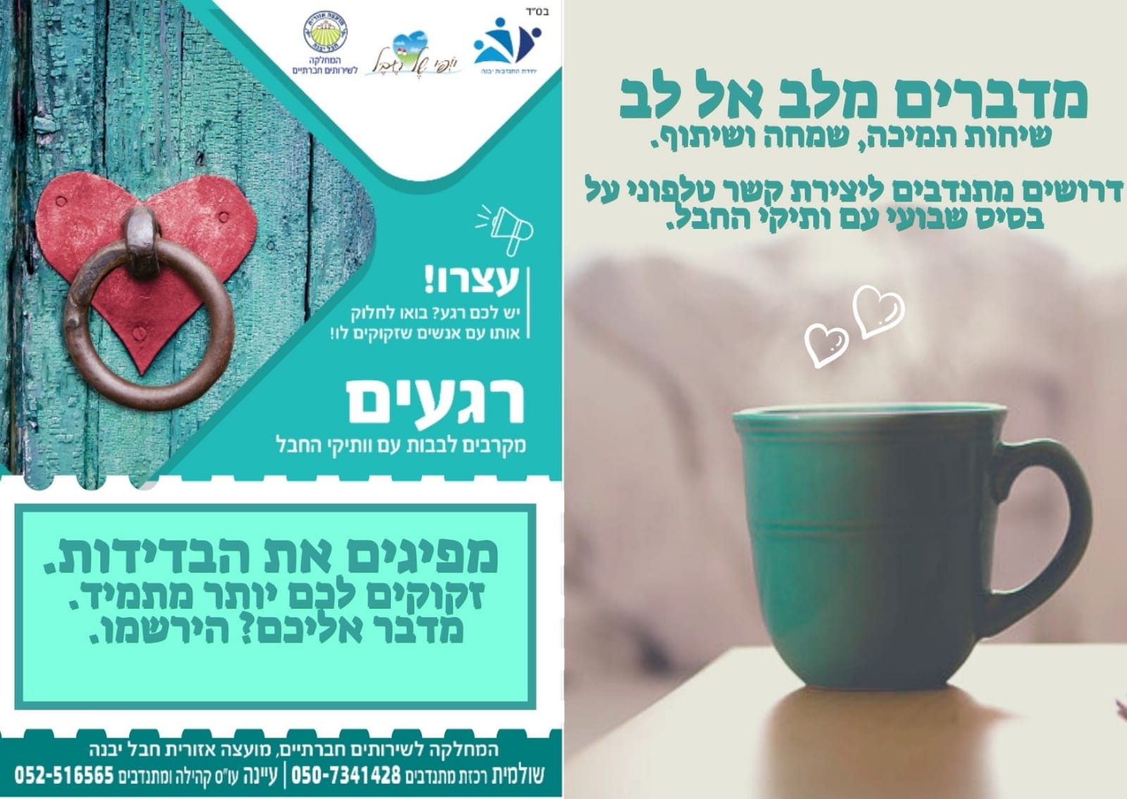 אנו זקוקים לכם יותר מתמיד לשיחת טלפון חברית, פעם בשבוע: לא משאירים אף אחד לבד!