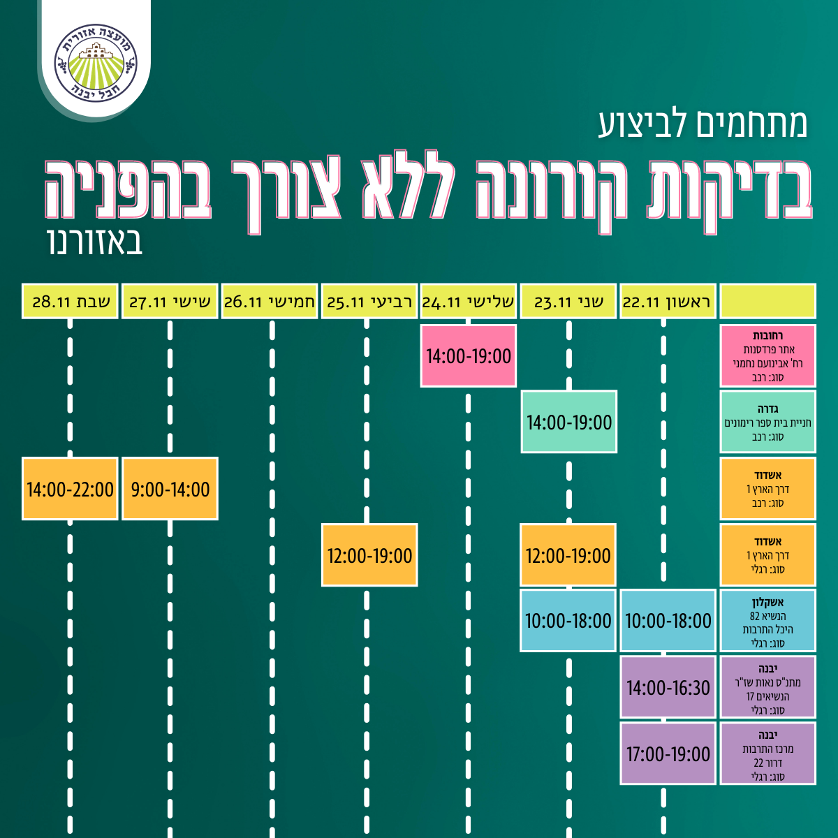 לשימושכם - מתחמים לבידוק חופשי לקורונה באזורינו