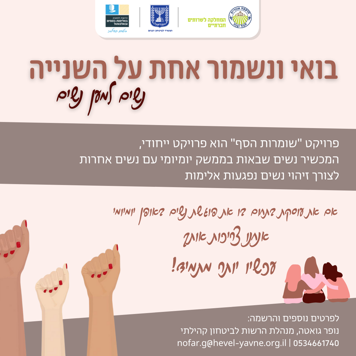 מועצה אזורית חבל יבנה קוראת לנשים ליצור למען נשים רשת ביטחון בקהילה באמצעות ״שומרות הסף״