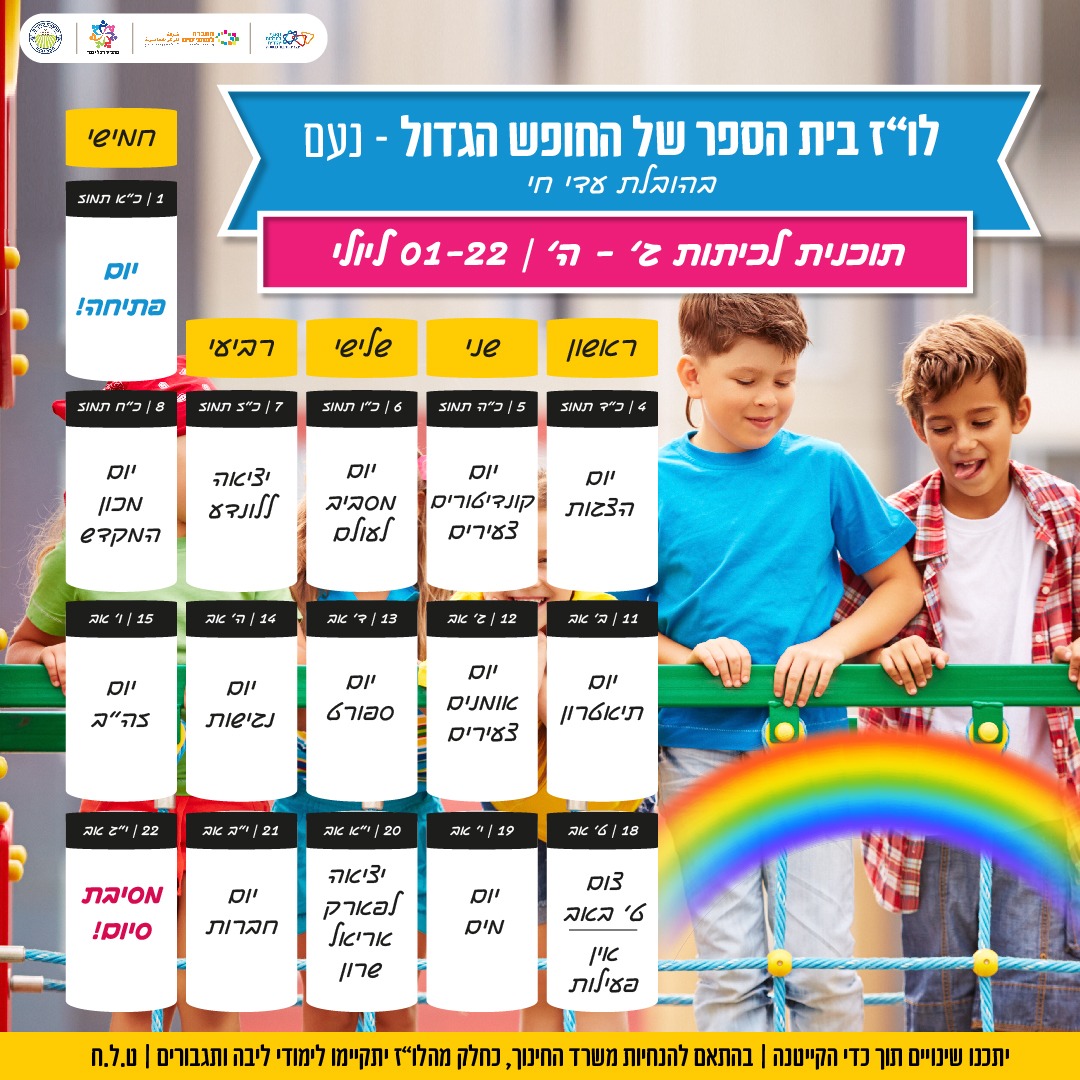 לתכנית של קייטנת נעם לכיתות ג'-ה' לחצו כאן