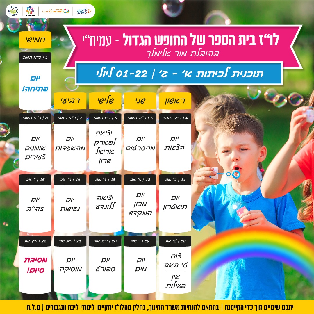 לתכנית של קייטנת עמיח"י לכיתות ד'-ו' לחצו כאן