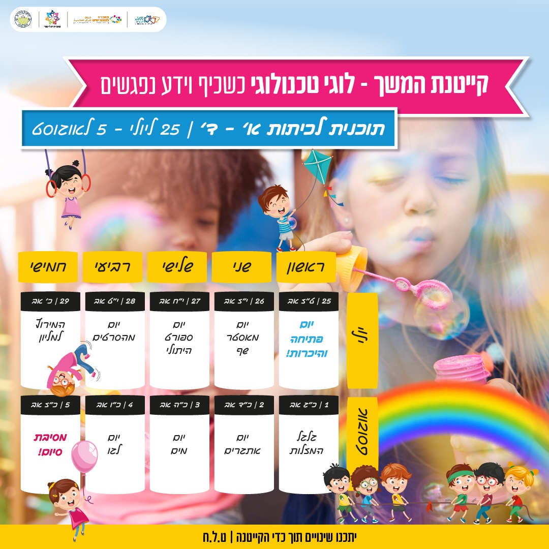 מוזמנים להירשם לקייטנות ההמשך!