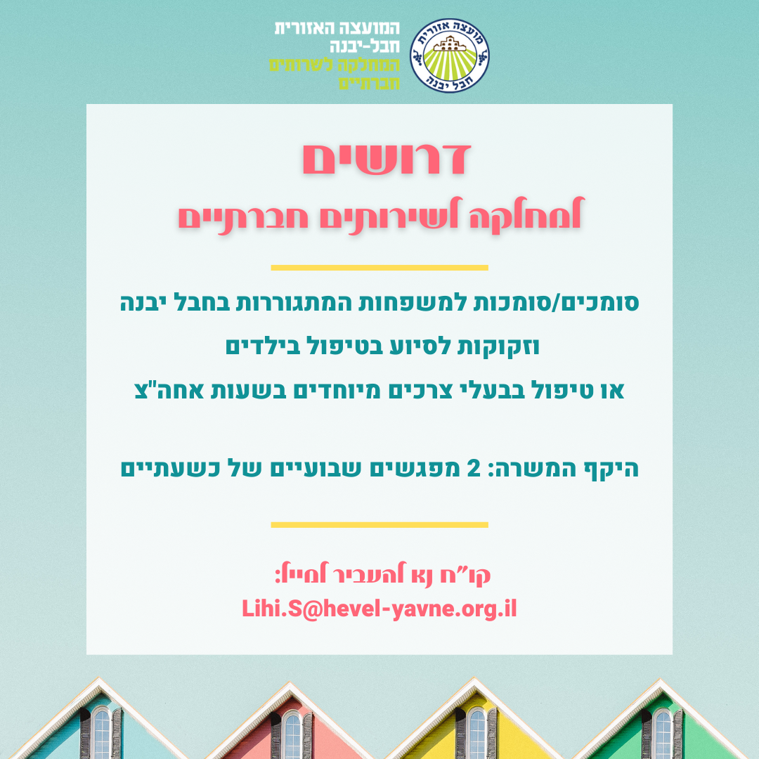 | דרושים למחלקה לשירותים חברתיים | דרושים | פנימי | 02/03/2021 | 27/04/2021 |