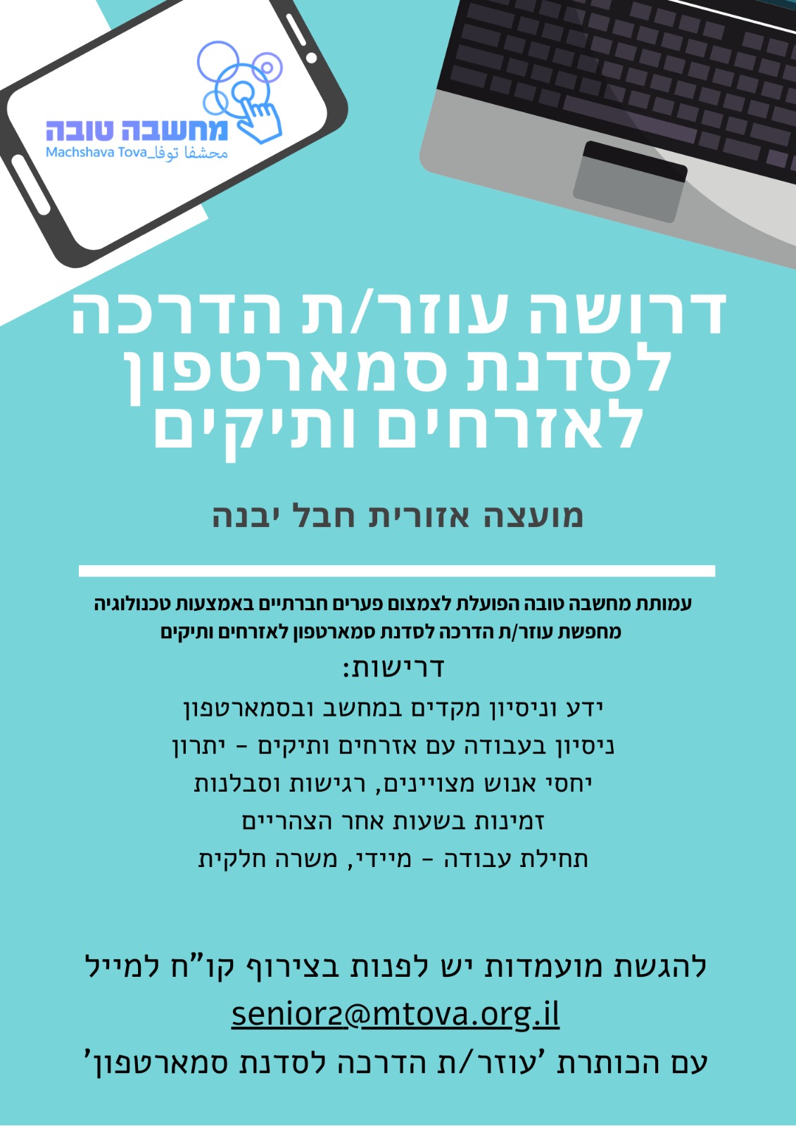 | דרוש/ה עוזר/ת הדרכה לסדנאות שימוש בסמארטפון | דרושים | פנימי | 09/06/2021 | 25/07/2021 |