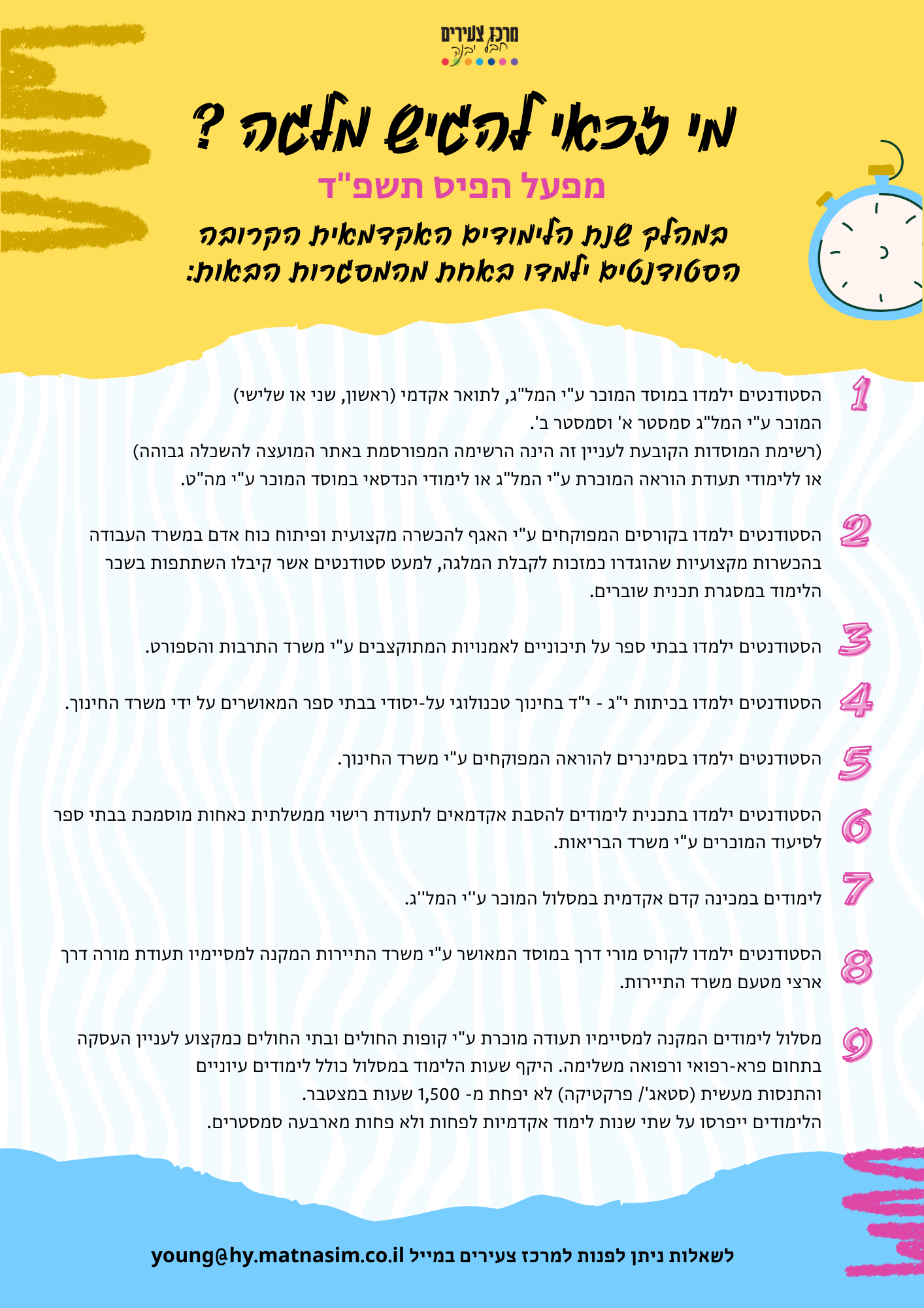שעות ההתנדבות יבוצעו עד ליום ה-1.3.24 לכל המאוחר (בהתאם לשיבוצים).